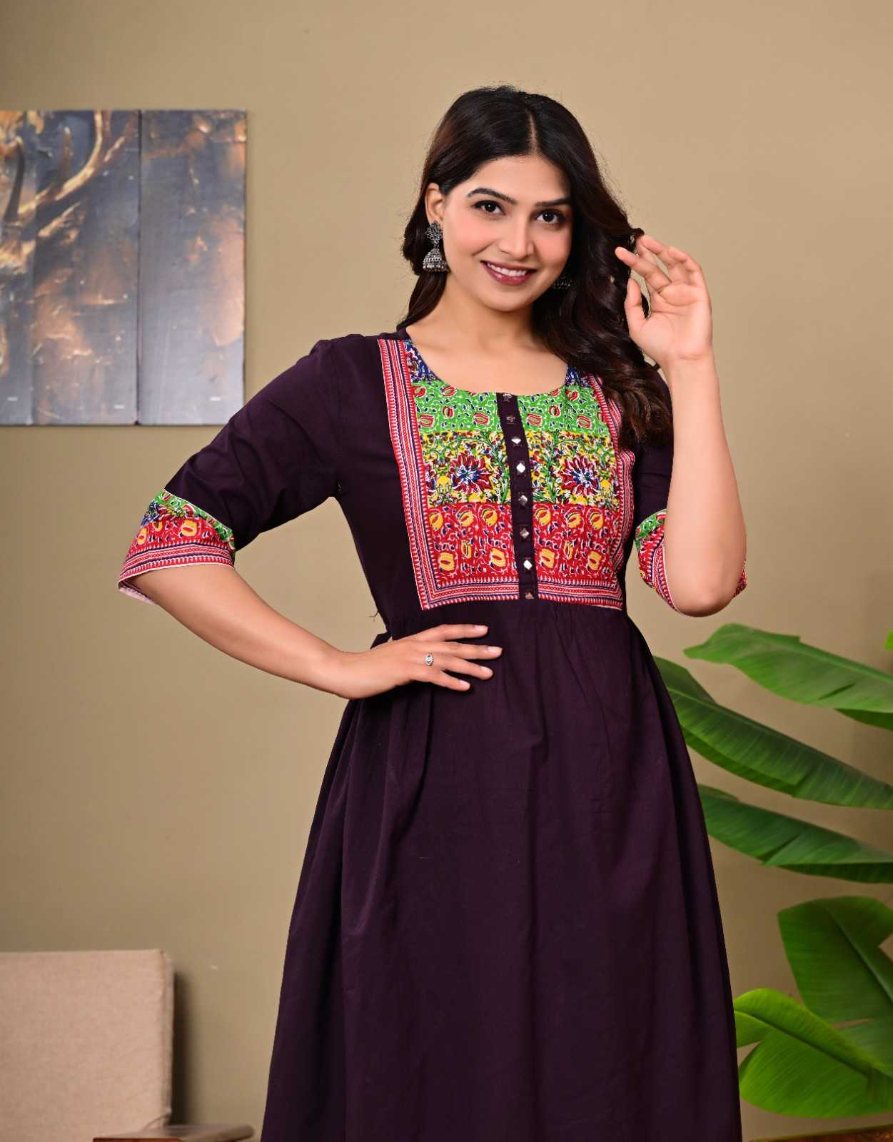✔ Elegant deep purple colour with ethnic embroidery